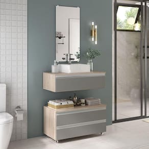 KIT BANHEIRO CRETA 80CM (INCLUI: 02 Armários + Cuba Sobrepor + Espelho)