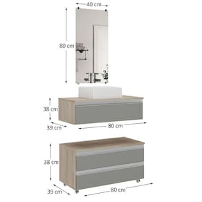 Conjunto De Gabinete Banheiro Creta 80cm (gabinete+cuba+espelheira) Madeirado Cinza