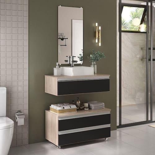 KIT BANHEIRO CRETA 80CM (INCLUI: 02 Armários + Cuba Sobrepor + Espelho)