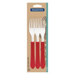 Já pensou em dar mais vida ao seu jantar? Desde o primeiro contato com a mesa, é importante encantar seus amigos e familiares e garantir o sucesso do jantar. Com o Conjunto de Garfos de Mesa Tramontina Leme com Lâminas em Aço Inox e Cabos de Polipropileno Vermelho 3 Peças será possível, devido a cor vibrante e a qualidade dos talheres. As peças são produzidas com lâminas em aço inox e contam com cabos em polipropileno proporcionando maior durabilidade e resistência. Qualidade e charme é com a Tramontina! Orientações As lâminas de aço inox garantem maior resistência devido a espessura do aço e a estampagem das lâminas. Os cabos de polipropileno possuem maior resistência e durabilidade. Podem ir à máquina de lavar louças facilitando seu dia a dia. Características Gerais EAN13 7891112211438 DUN14 17891112211435 NCM 8215.99.10 Peso Líquido 0,0642 kg. Peso Bruto 0,0708 kg. Metragem 0,000253 m³. Dimensões Embalagem (Compr. X Larg. X Alt.) 13x 77x 253 mm. Cor 1 A6192E Hexa Observações Antes da primeira utilização, lave bem as peças e seque-as.Tenha cuidado ao manusear produtos cortantes e perfurantes e mantenha-os fora do alcance das crianças.Para maior durabilidade dos produtos recomenda-se secar bem antes de guardar, mesmo após lavagem em máquina. Para descarte dos produtos e embalagens siga as orientações de reciclagem vigentes.
