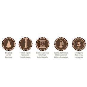 As lâminas de aço inox contam com maior espessura e uma estampagem do aço que garante maior resistência, evitando deformações. Os cabos de madeira tratada Polywood são resistentes à impactos e alta temperaturas garantindo maior resistência e durabilidade. Rebites de alumínio. Podem ir à máquina de lavar louças facilitando seu dia a dia.