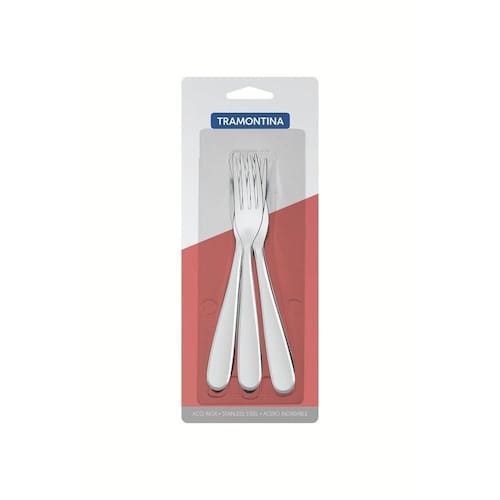 Conjunto De Garfos Para Sobremesa Angra Tramontina Em Aço Inox 3 Peças Tramontina Conjunto de Garfos para Sobremesa Angra Tramontina em Aço Inox 3 Peças Tramontina - - Totalmente feitos de aço inox, altamente duráveis, mantêm suas características , preservando a beleza, a higiene e a durabilidade do material. - Garfos com dentes polidos na parte interna, para proporcionar maior conforto no , com formato apropriado para a boca e bordas arredondadas. - Acabamento em brilho, com detalhes no cabo. - Próprios para diário combinam com qualquer ambiente. - Podem ser lavados diariamente na máquina de lavar louças. Características Gerais do Produto: Garantia: - 90 dias de garantia legal para vícios ou defeitos de fabricação