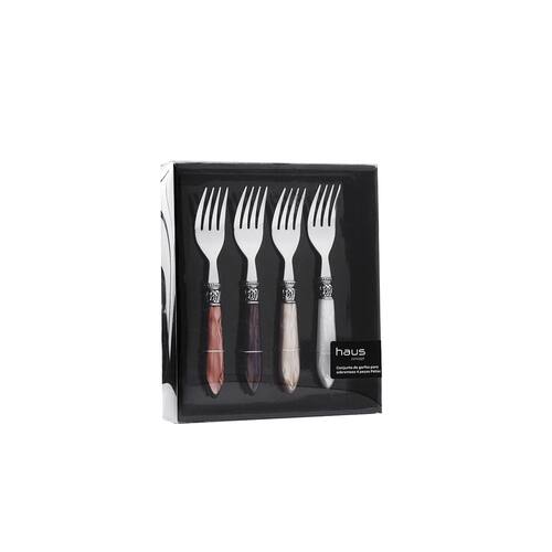 Conjunto composto por 4 garfos que podem ser utilizadas para tortas, sobremesas e outros petiscos. O cabo, em acabamento Perolizado, imprime delicadeza e requinte. Ideal para presente.
