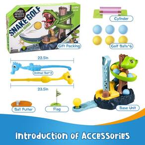 - 🏌?????Presente perfeito para crianças?O conjunto de tacos de golfe infantis é um presente de aniversário engraçado para seus meninos e meninas. Este conjunto abrangente inclui embalagem de presente, 6 bolas de golfe, 2 tacos de golfe em forma de animal, um kit de orifício para bandeira, um cilindro de bola e um kit de armazenamento de bolas de golfe em forma de cobra.