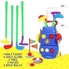 O TeganPlay Golf Set Toy proporcionará aos seus filhos horas de golfe. Um ótimo conjunto para iniciantes permite que seu filho pratique e aprenda as técnicas de golfe em um conjunto de tacos de golfe de brinquedo leve e seguro