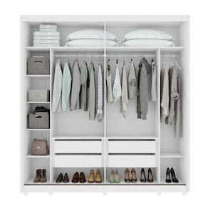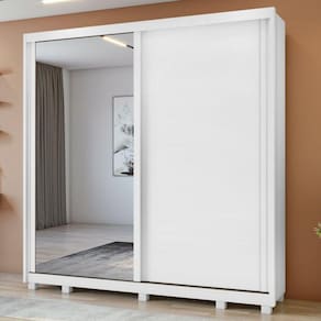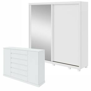 1x Guarda-roupa 2 Portas 4 Gavetas 100% Mdf Nix com Espelho e com Pés Branco Largura: 220 cm Altura: 237 cm Peso: 209,67 kg Profundidade: 55,5 cm Necessita Montagem: Sim