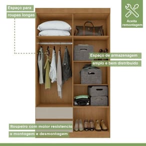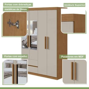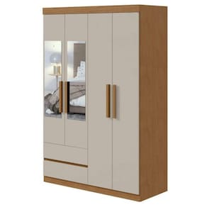 1x Guarda-roupa 4 Portas 2 Gavetas Zeus com Espelho Amêndoa Clean/Off White Largura: 119 cm Altura: 205 cm Peso: 72,51 kg Profundidade: 46,75 cm Necessita Montagem: Sim