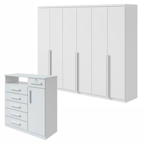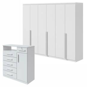 Possui Portas: Sim Suporta Até (kg): 70 kg Altura do Conjunto: 230 cm Ambiente: null Ambiente Principal: Quarto Cor: Branco Cor do Produto: Branco Informação Complementar: 1x Guarda-Roupa Casal 6 Portas 4 Gavetas Alonzo Branco Largura: 230,5 cm Altura: 230 cm Peso: 165 kg Profundidade: 47 cm Necessita Montagem: Sim
