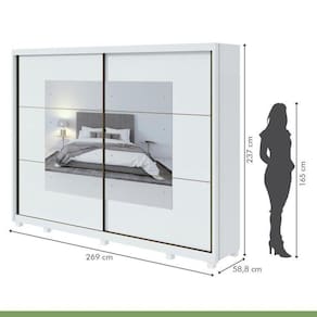1x Guarda Roupa Casal com Espelho 2 Portas 6 Gavetas Toronto Plus Branco Largura: 269 cm Altura: 237 cm Peso: 253 kg Profundidade: 57 cm Necessita Montagem: Sim