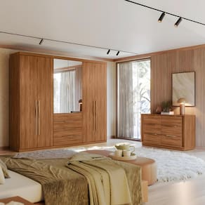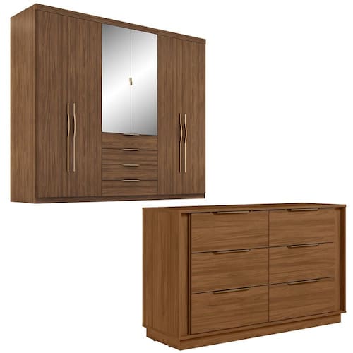 Transforme seu quarto em um refúgio de conforto e estilo com este conjunto de móveis que inclui uma cômoda elegante e um guarda roupa com espelho deslumbrante.