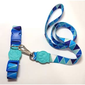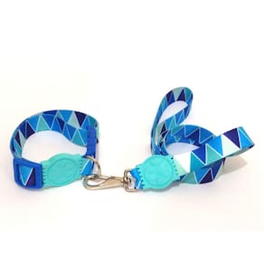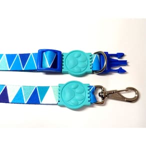 Conjunto de guia e coleiras confeccionadas em fita 25 mm de seda com estampa azul; Presilha de plástico altamente resistentes com passadores de ajuste e borracha em formato de pata; cor: azul Tamanho único. Especificações Guia: 90 cm Coleira: 32 a 49 cm. O seu pet vai ficar todo estiloso e alegre com a coleira de seda. Marca: Nica pet Ean: 7439259909216