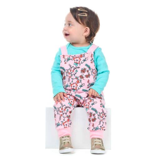 Jardineira em moletom felpudo, com botões extras body manga longa em suedine Cuidados:- Lavar à temperatura máxima de 40ºC;- Não utilizar alvejante;- Não usar secadora;- Passar à ferro em temperatura baixa até 110°C;- Não lavar a seco;- Secar pendurado no cabide;- Lavagem úmida à profissional.