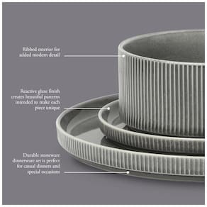 Inspire-se em uma pitoresca cidade costeira, com seu estilo de vida tranquilo e sol radiante, para adicionar elegância às suas refeições. A Coleção de Jantar Solana Coast capta o charme da cidade à beira-mar e o transforma em um conjunto de jantar elegante, ideal tanto para ambientes internos quanto externos. O acabamento de alto brilho reflete a luz do sol nas águas calmas, adicionando um brilho excepcional a cada peça. Feito de argilas terrosas, este conjunto se transforma em uma deslumbrante cerâmica que complementa qualquer mesa e realça a vivacidade de cada prato. Sua fabricação requer um processo intricado, em que as peças são queimadas várias vezes em altas temperaturas para criar uma construção perfeitamente resistente ao desgaste e não porosa. Uma camada de esmalte reativo finaliza o processo, permitindo que cada prato e tigela ganhe vida com variações naturais sutis, garantindo que nenhuma peça seja igual. Com laterais altas e retas para empilhamento fácil e nervuras exteriores para adicionar profundidade e textura, este conjunto equilibra perfeitamente a elegância clássica e o estilo contemporâneo. Como um conjunto de peças deslumbrantes para casa, este conjunto de jantar é um presente de bom gosto para qualquer ocasião, apreciado por sua utilidade prática e apelo decorativo. Seguro para lava-louças e micro-ondas, a Gibson Elite oferece uma fusão elegante de forma e função em uma infinidade de peças de jantar. Este conjunto completo inclui quatro pratos de jantar de 25,4 cm, quatro pratos de sobremesa de 19 cm e quatro tigelas de cereal de 15,24 cm, ideal para serviço para quatro pessoas. Feito de argilas ricas e queimado em altas temperaturas, este durável conjunto de jantar possui uma construção robusta e não porosa para qualidade e elegância duradouras. Cada prato e tigela exibe a combinação perfeita de arte e técnica, com um brilhante esmalte reativo que cria manchas intencionais para intensificar a profundidade de cor e textura. Com variações naturais no design, cada peça tem seu próprio caráter único, tornando-as verdadeiramente exclusivas. Laterais altas e retas criam um design empilhável para economizar espaço de armazenamento, enquanto as nervuras externas acrescentam um detalhe interessante para apresentações de refeições de qualidade de restaurante. Adicione este conjunto à sua lista de presentes ou presenteie familiares, amigos, recém-casados e novos proprietários para comemorar aniversários, casamentos, ocasiões especiais ou marcos do dia a dia.