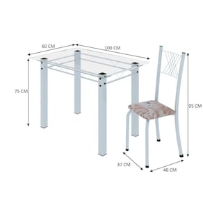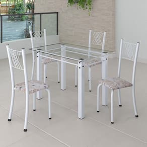 Quer deixar sua casa completa? Uma dica bacana de como transformar o seu lar, deixando-o mais receptivo e bonito? Então você precisa de móveis indispensáveis e deixar seu lar muito mais aconchegante, receptivo e sempre disponível para receber a visita de amigos, familiares e convidados. Você vai se apaixonar por este incrível Conjunto de Mesa com 4 Cadeiras Dany. Ideal para cozinha, ele é a melhor opção para completar o espaço. Aproveite!! Medida da Mesa (A x L x P): 75 cm x 60 cm x 100 cm Peso da Mesa: 37,6 kg Mesa suporta até: 8.0000 Acabamento da Cadeira/Banco: Pintura Texturizada Acabamento da Mesa: Pintura Texturizada Ambiente Principal: Cozinha Cadeira/Banco estofada: Somente Assento Estofado Cadeira/Banco suporta até: 120.0000 codigo_ean: 7909903360668 Complexidade da Montagem: Média: pode ser montado por mais de uma pessoa e/ou necessite de maior conhecimento para montagem Cor: Botanic Bege/Branco Cor do Produto: Botanic Bege/Branco Escala de Brilho: Semi-Brilho Espessura do Tampo: 6 mm Itens Inclusos: 1 Mesa, 4 Cadeiras, Kit Ferragens e Manual de Montagem Linha ou Coleção: Sara Manual de Especificação Técnica: https://product-hub-prd.madeiramadeira.com.br/860700/documents/a3cb6f89-c8c8-4aea-8dd1-97a75e615b97parasaladejantarv02yescasa.pdf Manual de Montagem e Instalação: https://product-hub-prd.madeiramadeira.com.br/860700/documents/79c279bf-aea6-4fb7-904f-73ed6d448795olorsaladejantarv02yescasa.pdf Manutenção: Pano levemente umedecido e pano seco. Não utilizar produtos de limpeza abrasivos. Material da Base da Mesa: Aço Material da Estrutura da Cadeira: Aço Material do Tampo: Vidro Medida da Base (A x L x P): 74,3 cm x 73 cm x 54 cm Medida da Cadeira/Banco (A x L x P): 95 cm x 40 cm x 37 cm Medida do Tampo (L x C x E): 60 cm x 100 cm x 0,6 cm Necessita Montagem: Sim Origem do Produto: Nacional Peso da Cadeira/Banco: 2,94 kg Possui Apoio Para os Pés: Não Quantidade de Cadeiras: 4 Quantidade de Lugares: 04 Recomendações de Uso, Manutenção e Limpeza: Pano levemente umedecido e pano seco. Não utilizar produtos de limpeza abrasivos. Sistema de Montagem: Parafusos Vidro Temperado: Sim