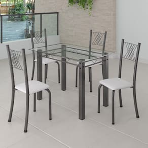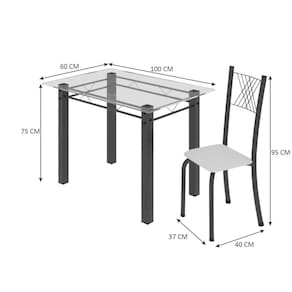 Quer deixar sua casa completa? Uma dica bacana de como transformar o seu lar, deixando-o mais receptivo e bonito? Então você precisa de móveis indispensáveis e deixar seu lar muito mais aconchegante, receptivo e sempre disponível para receber a visita de amigos, familiares e convidados. Você vai se apaixonar por este incrível Conjunto de Mesa com 4 Cadeiras Dany. Ideal para cozinha, ele é a melhor opção para completar o espaço. Aproveite!! Medida da Mesa (A x L x P): 75 cm x 60 cm x 100 cm Peso da Mesa: 37,6 kg Mesa suporta até: 8.0000 Acabamento da Cadeira/Banco: Pintura Texturizada Acabamento da Mesa: Pintura Texturizada Ambiente Principal: Cozinha Cadeira/Banco estofada: Somente Assento Estofado Cadeira/Banco suporta até: 120.0000 codigo_ean: 7909903360590 Complexidade da Montagem: Média: pode ser montado por mais de uma pessoa e/ou necessite de maior conhecimento para montagem Cor: Branco Liso/Mart Prata Cor do Produto: Branco Liso/Mart Prata Escala de Brilho: Semi-Brilho Espessura do Tampo: 6 mm Itens Inclusos: 1 Mesa, 4 Cadeiras, Kit Ferragens e Manual de Montagem Linha ou Coleção: Sara Manual de Especificação Técnica: https://product-hub-prd.madeiramadeira.com.br/860682/documents/8cf5c550-dd34-4e0d-b7ec-4d72228bb2d8parasaladejantarv02yescasa.pdf Manual de Montagem e Instalação: https://product-hub-prd.madeiramadeira.com.br/860682/documents/f7a91bb9-0e72-4efb-a767-c3c5c1285f55olorsaladejantarv02yescasa.pdf Manutenção: Pano levemente umedecido e pano seco. Não utilizar produtos de limpeza abrasivos. Material da Base da Mesa: Aço Material da Estrutura da Cadeira: Aço Material do Tampo: Vidro Medida da Base (A x L x P): 74,3 cm x 73 cm x 54 cm Medida da Cadeira/Banco (A x L x P): 95 cm x 40 cm x 37 cm Medida do Tampo (L x C x E): 60 cm x 100 cm x 0,6 cm Necessita Montagem: Sim Origem do Produto: Nacional Peso da Cadeira/Banco: 2,94 kg Possui Apoio Para os Pés: Não Quantidade de Cadeiras: 4 Quantidade de Lugares: 04 Recomendações de Uso, Manutenção e Limpeza: Pano levemente umedecido e pano seco. Não utilizar produtos de limpeza abrasivos. Sistema de Montagem: Parafusos Vidro Temperado: Sim