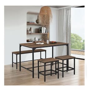 De um toque de estilo industrial a sua casa com o Conjunto de Jantar Retangular Amana. Perfeito para 4 pessoas, esse conjunto combina funcionalidade e design moderno, criando um ambiente sofisticado para suas refeicoes em familia ou com amigos.