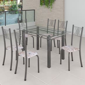 Quer deixar sua casa completa? Uma dica bacana de como transformar o seu lar, deixando-o mais receptivo e bonito? Então você precisa de móveis indispensáveis e deixar seu lar muito mais aconchegante, receptivo e sempre disponível para receber a visita de amigos, familiares e convidados. Você vai se apaixonar por este incrível Conjunto de Mesa com 6 Cadeiras Dany. Ideal para cozinha, ele é a melhor opção para completar o espaço. Aproveite!! Medida da Mesa (A x L x P): 75 cm x 75 cm x 140 cm Peso da Mesa: 64,36 kg Mesa suporta até: 8.0000 Acabamento da Cadeira/Banco: Pintura Texturizada Acabamento da Mesa: Pintura Texturizada Ambiente Principal: Cozinha Cadeira/Banco estofada: Somente Assento Estofado Cadeira/Banco suporta até: 120.0000 codigo_ean: 7909903360545 Complexidade da Montagem: Média: pode ser montado por mais de uma pessoa e/ou necessite de maior conhecimento para montagem Cor: Botanic Bege/Mart Prata Cor do Produto: Botanic Bege/Mart Prata Escala de Brilho: Semi-Brilho Espessura do Tampo: 6 mm Itens Inclusos: 1 Mesa, 6 Cadeiras, Kit Ferragens e Manual de Montagem Linha ou Coleção: Sara Manual de Especificação Técnica: https://product-hub-prd.madeiramadeira.com.br/860671/documents/740f1ee0-680e-4a71-8b53-2909627b6b51parasaladejantarv02yescasa.pdf Manual de Montagem e Instalação: https://product-hub-prd.madeiramadeira.com.br/860671/documents/1ccd94bb-cc73-4996-890a-dd201c17a920olorsaladejantarv02yescasa.pdf Manutenção: Pano levemente umedecido e pano seco. Não utilizar produtos de limpeza abrasivos. Material da Base da Mesa: Aço Material da Estrutura da Cadeira: Aço Material do Tampo: Vidro Medida da Base (A x L x P): 74,3 cm x 108 cm x 63,5 cm Medida da Cadeira/Banco (A x L x P): 95 cm x 40 cm x 37 cm Medida do Tampo (L x C x E): 75 cm x 140 cm x 0,6 cm Necessita Montagem: Sim Origem do Produto: Nacional Peso da Cadeira/Banco: 2,94 kg Possui Apoio Para os Pés: Não Quantidade de Cadeiras: 6 Quantidade de Lugares: 06 Recomendações de Uso, Manutenção e Limpeza: Pano levemente umedecido e pano seco. Não utilizar produtos de limpeza abrasivos. Sistema de Montagem: Parafusos Vidro Temperado: Sim