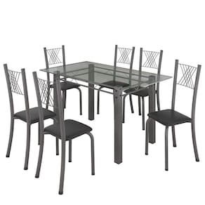 Quer deixar sua casa completa? Uma dica bacana de como transformar o seu lar, deixando-o mais receptivo e bonito? Então você precisa de móveis indispensáveis e deixar seu lar muito mais aconchegante, receptivo e sempre disponível para receber a visita de amigos, familiares e convidados. Você vai se apaixonar por este incrível Conjunto de Mesa com 6 Cadeiras Dany. Ideal para cozinha, ele é a melhor opção para completar o espaço. Aproveite!! Medida da Mesa (A x L x P): 75 cm x 75 cm x 140 cm Peso da Mesa: 64,36 kg Mesa suporta até: 8.0000 Acabamento da Cadeira/Banco: Pintura Texturizada Acabamento da Mesa: Pintura Texturizada Ambiente Principal: Cozinha Cadeira/Banco estofada: Somente Assento Estofado Cadeira/Banco suporta até: 120.0000 codigo_ean: 7909903360552 Complexidade da Montagem: Média: pode ser montado por mais de uma pessoa e/ou necessite de maior conhecimento para montagem Cor: Preto Liso/Mart Prata Cor do Produto: Preto Liso/Mart Prata Escala de Brilho: Semi-Brilho Espessura do Tampo: 6 mm Itens Inclusos: 1 Mesa, 6 Cadeiras, Kit Ferragens e Manual de Montagem Linha ou Coleção: Sara Manual de Especificação Técnica: https://product-hub-prd.madeiramadeira.com.br/860673/documents/fd9376d4-85e9-466b-8592-3d6171528b6cparasaladejantarv02yescasa.pdf Manual de Montagem e Instalação: https://product-hub-prd.madeiramadeira.com.br/860673/documents/14169a86-5ac5-452f-9ef4-eb0b89673309olorsaladejantarv02yescasa.pdf Manutenção: Pano levemente umedecido e pano seco. Não utilizar produtos de limpeza abrasivos. Material da Base da Mesa: Aço Material da Estrutura da Cadeira: Aço Material do Tampo: Vidro Medida da Base (A x L x P): 74,3 cm x 108 cm x 63,5 cm Medida da Cadeira/Banco (A x L x P): 95 cm x 40 cm x 37 cm Medida do Tampo (L x C x E): 75 cm x 140 cm x 0,6 cm Necessita Montagem: Sim Origem do Produto: Nacional Peso da Cadeira/Banco: 2,94 kg Possui Apoio Para os Pés: Não Quantidade de Cadeiras: 6 Quantidade de Lugares: 06 Recomendações de Uso, Manutenção e Limpeza: Pano levemente umedecido e pano seco. Não utilizar produtos de limpeza abrasivos. Sistema de Montagem: Parafusos Vidro Temperado: Sim
