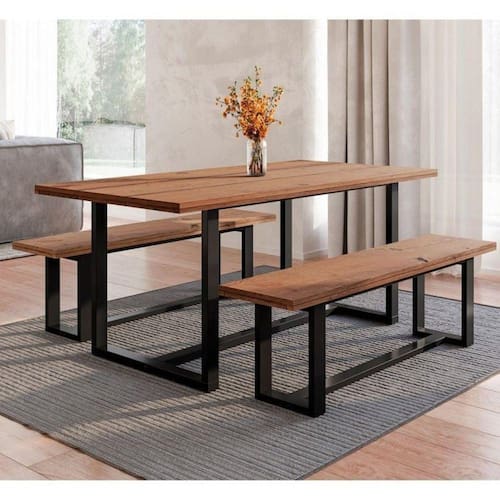 Conjunto de Jantar Mesa 210cm com 2 Bancos Rústico Industrial Lumber Yescasa Marrom/Preto