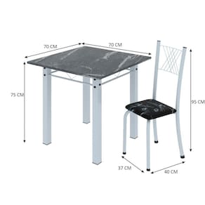 Quer deixar sua casa completa? Uma dica bacana de como transformar o seu lar, deixando-o mais receptivo e bonito? Então você precisa de móveis indispensáveis e deixar seu lar muito mais aconchegante, receptivo e sempre disponível para receber a visita de amigos, familiares e convidados. Você vai se apaixonar por este incrível Conjunto de Mesa com 4 Cadeiras Dany. Ideal para cozinha, ele é a melhor opção para completar o espaço. Aproveite!! Medida da Mesa (A x L x P): 75 cm x 70 cm x 70 cm Peso da Mesa: 34,42 kg Mesa suporta até: 8.0000 Acabamento da Cadeira/Banco: Pintura Texturizada Acabamento da Mesa: Pintura Texturizada Ambiente Principal: Cozinha Cadeira/Banco estofada: Somente Assento Estofado Cadeira/Banco suporta até: 120.0000 codigo_ean: 7909903360354 Complexidade da Montagem: Média: pode ser montado por mais de uma pessoa e/ou necessite de maior conhecimento para montagem Cor: Preto Floral/Branco Cor do Produto: Preto Floral/Branco Escala de Brilho: Semi-Brilho Espessura do Tampo: 15 mm Itens Inclusos: 1 Mesa, 4 Cadeiras, Kit Ferragens e Manual de Montagem Linha ou Coleção: Sara Manual de Especificação Técnica: https://product-hub-prd.madeiramadeira.com.br/860604/documents/f214ef51-a17f-40d7-9790-28e774ea1dfbparasaladejantarv02yescasa.pdf Manual de Montagem e Instalação: https://product-hub-prd.madeiramadeira.com.br/860604/documents/fbc027e5-cbcb-4859-b8bf-f371dd85acdcidrosaladejantarv02yescasa.pdf Manutenção: Pano levemente umedecido e pano seco. Não utilizar produtos de limpeza abrasivos. Material da Base da Mesa: Aço Material da Estrutura da Cadeira: Aço Material do Tampo: Granito Medida da Base (A x L x P): 74,3 cm x 73 cm x 54 cm Medida da Cadeira/Banco (A x L x P): 95 cm x 40 cm x 37 cm Medida do Tampo (L x C x E): 70 cm x 70 cm x 1,5 cm Necessita Montagem: Sim Origem do Produto: Nacional Peso da Cadeira/Banco: 2,94 kg Possui Apoio Para os Pés: Não Quantidade de Cadeiras: 4 Quantidade de Lugares: 04 Recomendações de Uso, Manutenção e Limpeza: Pano levemente umedecido e pano seco. Não utilizar produtos de limpeza abrasivos. Sistema de Montagem: Parafusos