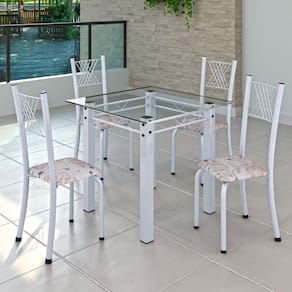 Quer deixar sua casa completa? Uma dica bacana de como transformar o seu lar, deixando-o mais receptivo e bonito? Então você precisa de móveis indispensáveis e deixar seu lar muito mais aconchegante, receptivo e sempre disponível para receber a visita de amigos, familiares e convidados. Você vai se apaixonar por este incrível Conjunto de Mesa com 4 Cadeiras Dany. Ideal para cozinha, ele é a melhor opção para completar o espaço. Aproveite!! Medida da Mesa (A x L x P): 75 cm x 75 cm x 75 cm Peso da Mesa: 12,6 kg Mesa suporta até: 8.0000 Acabamento da Cadeira/Banco: Pintura Texturizada Acabamento da Mesa: Pintura Texturizada Ambiente Principal: Cozinha Cadeira/Banco estofada: Somente Assento Estofado Cadeira/Banco suporta até: 120.0000 codigo_ean: 7909903360781 Complexidade da Montagem: Média: pode ser montado por mais de uma pessoa e/ou necessite de maior conhecimento para montagem Cor: Botanic Bege/Branco Cor do Produto: Botanic Bege/Branco Escala de Brilho: Semi-Brilho Espessura do Tampo: 6 mm Itens Inclusos: 1 Mesa, 4 Cadeiras, Kit Ferragens e Manual de Montagem Linha ou Coleção: Sara Manual de Especificação Técnica: https://product-hub-prd.madeiramadeira.com.br/860726/documents/814f389d-6348-4124-8bc1-bc343e2779e7parasaladejantarv02yescasa.pdf Manual de Montagem e Instalação: https://product-hub-prd.madeiramadeira.com.br/860726/documents/705e2eb2-d487-4532-93d2-5ece3c172e33idrosaladejantarv02yescasa.pdf Manutenção: Pano levemente umedecido e pano seco. Não utilizar produtos de limpeza abrasivos. Material da Base da Mesa: Aço Material da Estrutura da Cadeira: Aço Material do Tampo: Vidro Medida da Base (A x L x P): 74,3 cm x 73 cm x 54 cm Medida da Cadeira/Banco (A x L x P): 95 cm x 40 cm x 37 cm Medida do Tampo (L x C x E): 75 cm x 75 cm x 0,6 cm Necessita Montagem: Sim Origem do Produto: Nacional Peso da Cadeira/Banco: 2,94 kg Possui Apoio Para os Pés: Não Quantidade de Cadeiras: 4 Quantidade de Lugares: 04 Recomendações de Uso, Manutenção e Limpeza: Pano levemente umedecido e pano seco. Não utilizar produtos de limpeza abrasivos. Sistema de Montagem: Parafusos Vidro Temperado: Sim