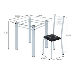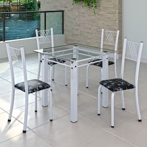 Quer deixar sua casa completa? Uma dica bacana de como transformar o seu lar, deixando-o mais receptivo e bonito? Então você precisa de móveis indispensáveis e deixar seu lar muito mais aconchegante, receptivo e sempre disponível para receber a visita de amigos, familiares e convidados. Você vai se apaixonar por este incrível Conjunto de Mesa com 4 Cadeiras Dany. Ideal para cozinha, ele é a melhor opção para completar o espaço. Aproveite!! Medida da Mesa (A x L x P): 75 cm x 75 cm x 75 cm Peso da Mesa: 12,6 kg Mesa suporta até: 8.0000 Acabamento da Cadeira/Banco: Pintura Texturizada Acabamento da Mesa: Pintura Texturizada Ambiente Principal: Cozinha Cadeira/Banco estofada: Somente Assento Estofado Cadeira/Banco suporta até: 120.0000 codigo_ean: 7909903360378 Complexidade da Montagem: Média: pode ser montado por mais de uma pessoa e/ou necessite de maior conhecimento para montagem Cor: Preto Floral/Branco Cor do Produto: Preto Floral/Branco Escala de Brilho: Semi-Brilho Espessura do Tampo: 6 mm Itens Inclusos: 1 Mesa, 4 Cadeiras, Kit Ferragens e Manual de Montagem Linha ou Coleção: Sara Manual de Especificação Técnica: https://product-hub-prd.madeiramadeira.com.br/860607/documents/2c1f5ac4-c75f-4688-bb1f-984ebb4c00eeparasaladejantarv02yescasa.pdf Manual de Montagem e Instalação: https://product-hub-prd.madeiramadeira.com.br/860607/documents/187676dc-827b-45ef-9a85-f11ff96870f6idrosaladejantarv02yescasa.pdf Manutenção: Pano levemente umedecido e pano seco. Não utilizar produtos de limpeza abrasivos. Material da Base da Mesa: Aço Material da Estrutura da Cadeira: Aço Material do Tampo: Vidro Medida da Base (A x L x P): 74,3 cm x 73 cm x 54 cm Medida da Cadeira/Banco (A x L x P): 95 cm x 40 cm x 37 cm Medida do Tampo (L x C x E): 75 cm x 75 cm x 0,6 cm Necessita Montagem: Sim Origem do Produto: Nacional Peso da Cadeira/Banco: 2,94 kg Possui Apoio Para os Pés: Não Quantidade de Cadeiras: 4 Quantidade de Lugares: 04 Recomendações de Uso, Manutenção e Limpeza: Pano levemente umedecido e pano seco. Não utilizar produtos de limpeza abrasivos. Sistema de Montagem: Parafusos Vidro Temperado: Sim
