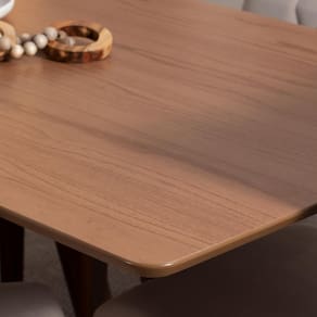 Especificações da Mesa: Base e Tampo Canella. Produzido em MDF 20 mm com acabamento em pintura UV. Tampo usinado com aplicação de fita de borda. Indicado para ambientes internos. Ideal para 6 lugares. Largura: 160 cm. Altura: 74,7 cm. Profundidade: 90 cm. Peso do Produto: 36.88 kg. Peso Suportado no tampo: 30 kg.