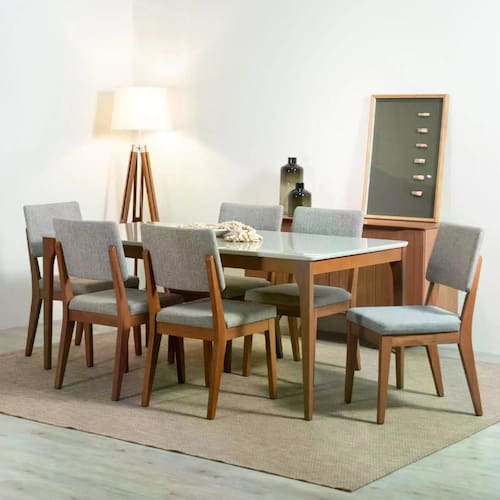 Conjunto composto por 1 Mesa de Jantar e 6 Cadeiras.