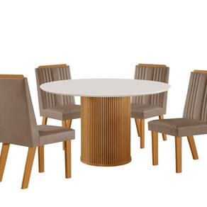 Conjunto de Jantar Mesa Dara 1,10 X 1,10 Tampo Mdf/vidro com 4 Cadeiras Florença Castanho Cinamomo / Capuccino / Off White - Marrom