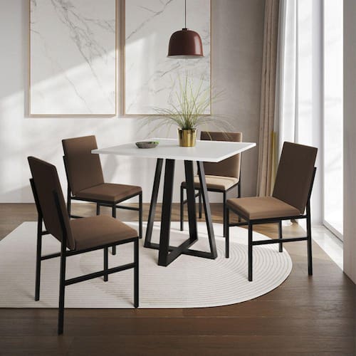 Com um design sofisticado e contemporâneo, este conjunto é perfeito para transformar suas refeições em momentos especiais. A mesa espaçosa oferece espaço suficiente para acomodar sua família e convidados, enquanto as cadeiras estofadas proporcionam conforto excepcional durante as refeições. Seja para jantares formais ou encontros casuais, nosso conjunto de mesa e cadeiras é a escolha perfeita para adicionar estilo e funcionalidade à sua sala de jantar.Tipo: ConjuntoModelo: MônacoTecido Cadeira: VeludoCor Estofado: Marrom Cor Base Cadeira: PretoCor Tampo Mesa: Branco Cor Base Mesa: Preto Medidas Cadeira:Altura: 85cmLargura: 41cmComprimento: 50cmMedidas Mesa:Altura: 76cmLargura: 90cmComprimento: 90cmATENÇÃOIMAGENS MERAMENTE ILUSTRATIVAS REALIZADO EDIÇÃO, PODENDO HAVER UMA PEQUENA VARIAÇÃO DE COR DEPENDENDO DE CADA TELA OU MONITOR. Ean: 7899892231813