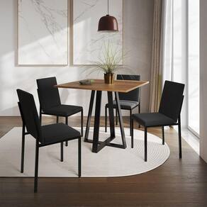 Conjunto De Jantar Mesa Mônaco 90Cm Tampo Imbuia Com 4 Cadeiras Estofadas Pretas - Cor: Preto