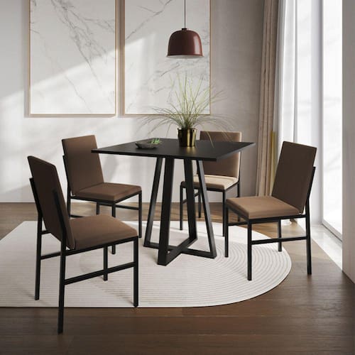 Com um design sofisticado e contemporâneo, este conjunto é perfeito para transformar suas refeições em momentos especiais. A mesa espaçosa oferece espaço suficiente para acomodar sua família e convidados, enquanto as cadeiras estofadas proporcionam conforto excepcional durante as refeições. Seja para jantares formais ou encontros casuais, nosso conjunto de mesa e cadeiras é a escolha perfeita para adicionar estilo e funcionalidade à sua sala de jantar.Tipo: ConjuntoModelo: MônacoTecido Cadeira: VeludoCor Estofado: Marrom Cor Base Cadeira: Preto Cor Tampo Mesa Preto Cor Base Mesa: Preto Medidas Cadeira:Altura: 85cmLargura: 41cmComprimento: 50cmMedidas Mesa:Altura: 76cmLargura: 90cmComprimento: 90cmATENÇÃOIMAGENS MERAMENTE ILUSTRATIVAS REALIZADO EDIÇÃO, PODENDO HAVER UMA PEQUENA VARIAÇÃO DE COR DEPENDENDO DE CADA TELA OU MONITOR. Ean: 7899892231752