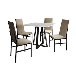 IMAGENS MERAMENTE ILUSTRATIVAS REALIZADO EDIÇÃO, PODENDO HAVER UMA PEQUENA VARIAÇÃO DE COR DEPENDENDO DE CADA TELA OU MONITOR.Conjunto De Jantar Mesa MÃnaco Premium 90cm Branca Com 4 Cadeiras Estofadas Bege