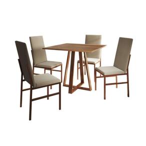 IMAGENS MERAMENTE ILUSTRATIVAS REALIZADO EDIÇÃO, PODENDO HAVER UMA PEQUENA VARIAÇÃO DE COR DEPENDENDO DE CADA TELA OU MONITOR.Conjunto De Jantar Mesa MÃnaco Premium 90cm Imbuia Com 4 Cadeiras Estofadas Bege Base Cobre