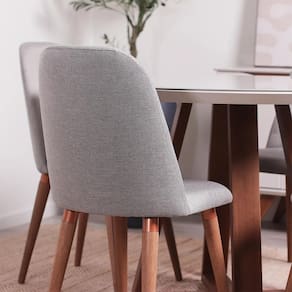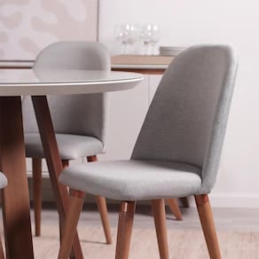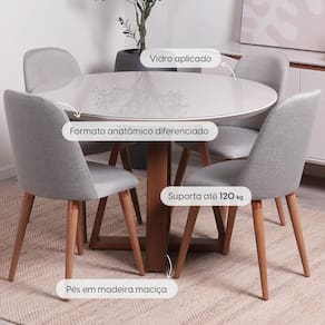 Madeira maciça | MDF | Vidro | LinhoEspecificações: Conjunto composto por 1 Mesa de Jantar e 4 Cadeiras.
