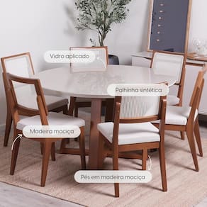 Madeira Maciça | MDF | Vidro | LinhoEspecificações: Conjunto composto por 1 Mesa de Jantar e 6 Cadeiras.