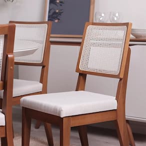 - Assento com espuma D23 e encosto com detalhe em palhinha sintética em nylon.