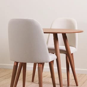 Pés em madeira maciça com acabamento em verniz UV e sapatas embutidas.