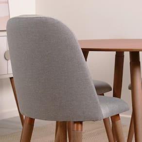 Pés em madeira maciça com acabamento em verniz UV e sapatas embutidas.