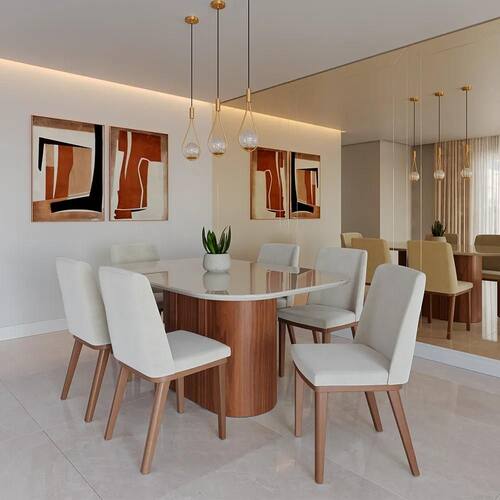 Especificações: Conjunto composto por 1 mesa de jantar e 6 cadeiras.