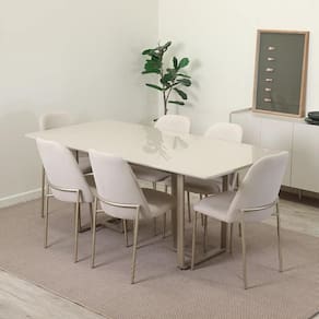 Especificações: Conjunto composto por 1 mesa de jantar e 6 cadeiras.