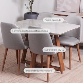 Especificações: Conjunto composto por 1 Mesa de Jantar e 4 Cadeiras.