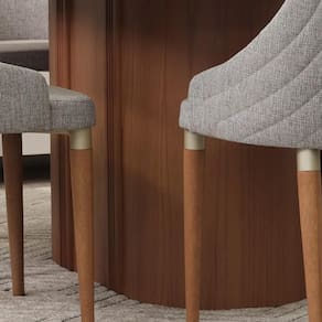 Cadeira de Madeira Maciça Estofada Evelyn - Natural c/ Linho Mescla Cinza - Champanhe