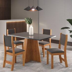 O Conjunto de Jantar Ritmos chegou para fazer parte de um dos cantinhos mais queridos da casa. Ele estará presente no dia a dia da sua família, naqueles momentos especiais das refeições. O conjunto é super versátil, podendo ser utilizado tanto na sala de jantar quanto na cozinha. Medida da Mesa (A x L x P): 78,1x120x80cm Peso da Mesa: 29,7 kg Mesa suporta até: 50.0000 Acabamento da Cadeira/Banco: Pintura UV Acabamento da Mesa: Pintura UV Altura do Conjunto: 78.09999999999999 Ambiente Principal: Sala de Jantar Cadeira/Banco Estofada: Encosto e Assento Estofados Cadeira/Banco estofada: Encosto e Assento Estofados Cadeira/Banco suporta até: 80.0000 codigo_ean: 7909903468081 Complexidade da Montagem: Média: pode ser montado por mais de uma pessoa e/ou necessite de maior conhecimento para montagem Cor: Mel/Grafite Cor do Produto: Mel/Grafite De Canto (Canto Alemão): Não Enchimento do Assento: Espuma D-16 Enchimento do Encosto: Espuma D-12 Escala de Brilho: Semi-Brilho Espessura do Tampo: 25 mm Estrutura do Assento: MDP/Espuma Estrutura do Encosto: MDP/Espuma Formato do Tampo: Retangular Informações Complementares: Sala de Jantar 4 Lugares Itens Inclusos: 1 Mesa, 4 Cadeiras, Manual de Montagem e Kit Ferragens Manual de Montagem e Instalação: https://product-hub-prd.madeiramadeira.com.br/874647/documents/f32af504-8933-4694-8130-a79163d53aeamanualdemontagemsalaritmos.pdf Material da Base da Mesa: MDP Material da Estrutura da Cadeira: MDF/MDP Material do Tampo: MDP/Vidro Material Principal: MDF/MDP Material Principal das Cadeiras/Bancos: MDF/MDP Medida da Cadeira/Banco (A x L x P): 89x38,7x51,5cm Medida do Tampo (L x C x E): 120x80x2,5cm Mesa Dobrável: Não Mesa Extensível: Não Necessita Montagem: Sim Origem do Produto: Nacional Peso da Cadeira/Banco: 5,9 kg Possui Apoio Para os Pés: Não Possui Prateleiras: Não Possui Vidro: Sim Quantidade de Cadeiras: 4 Quantidade de Lugares: 04 Recomendações de Uso, Manutenção e Limpeza: Limpar com pano levemente umedecido com água Revestimento da Cadeira/Banco: Veludo Sistema de Montagem: Parafusos, cavilhas Tipo de Assento: Fixo Tipo de Encosto: Fixo Ean: 7909903468081
