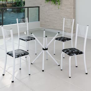 Quer deixar sua casa completa? Uma dica bacana de como transformar o seu lar, deixando-o mais receptivo e bonito? Então você precisa de móveis indispensáveis e deixar seu lar muito mais aconchegante, receptivo e sempre disponível para receber a visita de amigos, familiares e convidados. Você vai se apaixonar por este incrível Conjunto de Mesa com 4 Cadeiras Dany. Ideal para cozinha, ele é a melhor opção para completar o espaço. Aproveite!! Medida da Mesa (A x L x P): 75 cm x 75 cm x 75 cm Peso da Mesa: 7,05 kg Mesa suporta até: 8.0000 Acabamento da Cadeira/Banco: Pintura Texturizada Acabamento da Mesa: Pintura Texturizada Ambiente Principal: Cozinha Cadeira/Banco estofada: Somente Assento Estofado Cadeira/Banco suporta até: 120.0000 codigo_ean: 7909903360415 Complexidade da Montagem: Média: pode ser montado por mais de uma pessoa e/ou necessite de maior conhecimento para montagem Cor: Preto Floral/Branco Cor do Produto: Preto Floral/Branco Escala de Brilho: Semi-Brilho Espessura do Tampo: 6 mm Itens Inclusos: 1 Mesa, 4 Cadeiras, Kit Ferragens e Manual de Montagem Linha ou Coleção: Sara Manual de Especificação Técnica: https://product-hub-prd.madeiramadeira.com.br/860615/documents/78c06741-b694-4c76-b5a0-73b8e8e888fbparasaladejantarv02yescasa.pdf Manual de Montagem e Instalação: https://product-hub-prd.madeiramadeira.com.br/860615/documents/124e739a-cf44-4117-9363-4d05170be173ondosaladejantarv02yescasa.pdf Manutenção: Pano levemente umedecido e pano seco. Não utilizar produtos de limpeza abrasivos. Material da Base da Mesa: Aço Material da Estrutura da Cadeira: Aço Material do Tampo: Vidro Medida da Base (A x L x P): 74,3cm x 69 cm x 69 cm Medida da Cadeira/Banco (A x L x P): 95 cm x 40 cm x 37 cm Medida do Tampo (L x C x E): 75 cm x 75 cm x 0,6 cm Necessita Montagem: Sim Origem do Produto: Nacional Peso da Cadeira/Banco: 2,94 kg Possui Apoio Para os Pés: Não Quantidade de Cadeiras: 4 Quantidade de Lugares: 04 Recomendações de Uso, Manutenção e Limpeza: Pano levemente umedecido e pano seco. Não utilizar produtos de limpeza abrasivos. Sistema de Montagem: Parafusos Vidro Temperado: Sim