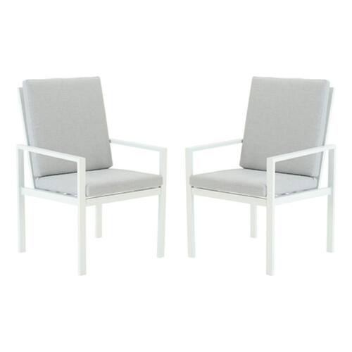 "Elevando o conceito de conforto e estilo, o Conjunto de Moveis para Jardim Athena e um verdadeiro convite ao lazer ao ar livre. Composto por duas cadeiras de aluminio na tonalidade branca e cinza, este conjunto e uma peca-chave para quem deseja agregar valor estetico ao seu espaco externo, seja ele molhado, seco ou umido. A estrutura de aluminio das cadeiras proporciona leveza ao conjunto, alem de garantir alta resistencia contra as adversidades climaticas.