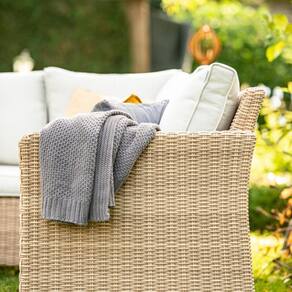 "Transforme o seu espaco ao ar livre em um verdadeiro refugio de relaxamento e convivencia com o Conjunto de Moveis para Jardim Medena da Naterial. Composto por um sofa, uma mesa e uma banqueta, este conjunto de 5 pecas e ideal para acomodar ate 7 pessoas confortavelmente, tornando-o perfeito para jantares ao ar livre, festas no jardim ou simplesmente para relaxar ao ar livre.