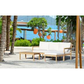 Conjunto de Jardim de Madeira 3 Pecas Sofa, Banco e Mesa