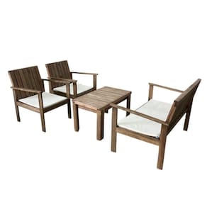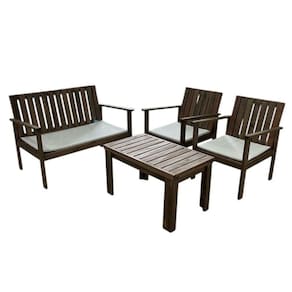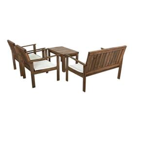 Fácil manutenção: tanto a madeira quanto os estofados são fáceis de cuidar, mantendo o conjunto sempre bonito. O conjunto contém: 1 mesa de centro 1 sofá de 2 lugares 2 poltronas individuais Almofadas bege inclusas Ideal para relaxar, receber visitas ou criar um cantinho especial ao ar livre com muito estilo.
