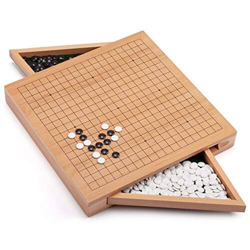 GOBAN: Esta placa Go é feita de folheado de madeira de alta qualidade para combinar com a árvore Kaya dourada, que os melhores Gobans são feitos. O tabuleiro mede quase 12 polegadas, tornando-o um tamanho conveniente que não requer um grande espaço para jogar. A superfície apresenta 19 linhas horizontais e 19 verticais que formam 361 pontos de interseção com 324 quadrados. ARMAZENAMENTO: Possui duas gavetas de armazenamento em ambas as extremidades para armazenar as pedras brancas e pretas. Não são necessárias tigelas de go. Retire as pedras da gaveta durante o jogo. Quando não estão em uso, as gavetas entram bem no jogo. O design elegante torna este jogo Go uma peça decorativa perfeita que atrairá os jogadores quando deixada de fora como uma peça central de mesa de café. As pedras de plástico de alta qualidade são de duplo convéxo, tornando-as mais fáceis de pegar e agradáveis de brincar. JOGOS SÃO BONS PARA VOCÊ: Go enfatiza o equilíbrio e o foco construtivo e ensina contenção e cooperação, e envolve mais áreas do cérebro e pode até produzir mudanças físicas. Os jogadores do Go utilizam habilidades de pensamento de ordem superior, analisam ações e consequências e visualizam possibilidades futuras. Cada vez que o jogo é jogado, essas habilidades são fortalecidas.